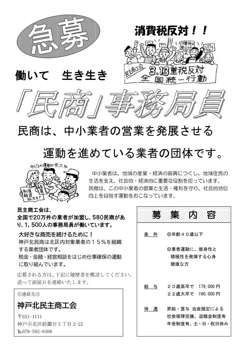 北民商では、新事務局員を募集しています。