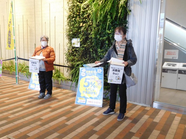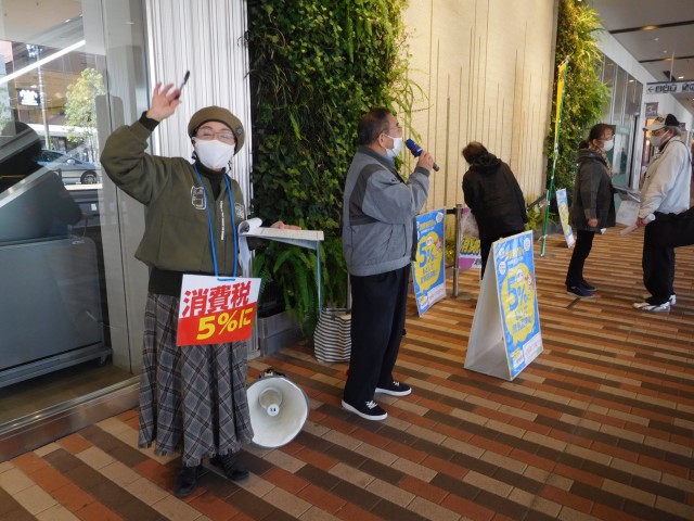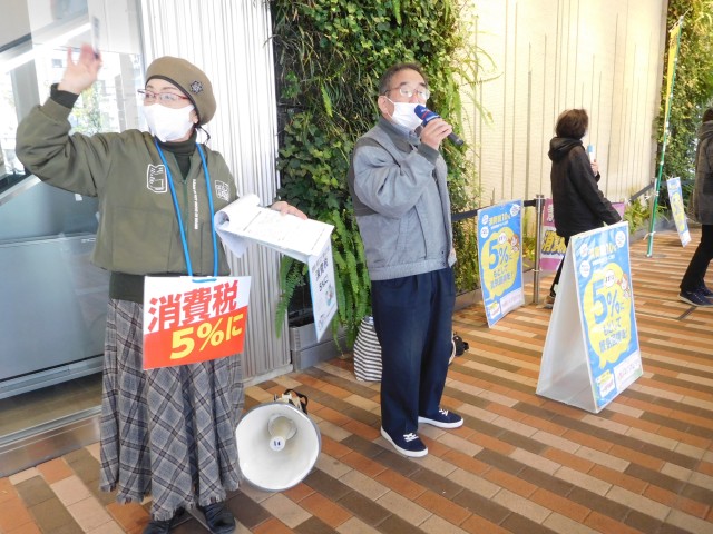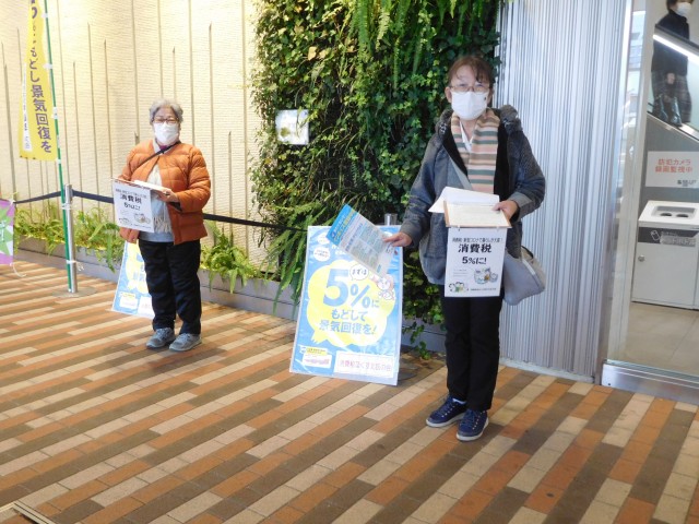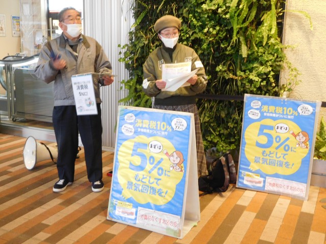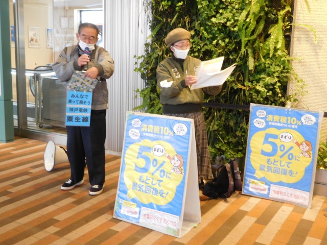 12月1日㈬鈴蘭台駅前にて消費税5%減税を求める署名活動と宣伝を行いました。